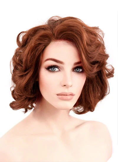 Marvel Black Widow Auburn Curly Bob Lace Front Synthetic Wig LF253