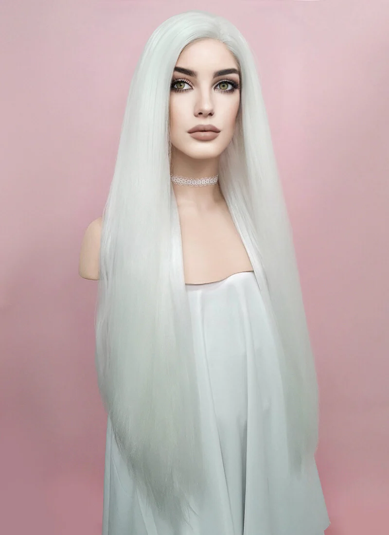 Straight Yaki White Lace Front Synthetic Wig LF624B