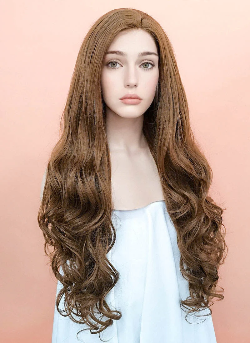 Chestnut Brown Wavy Lace Front Synthetic Wig LF667J